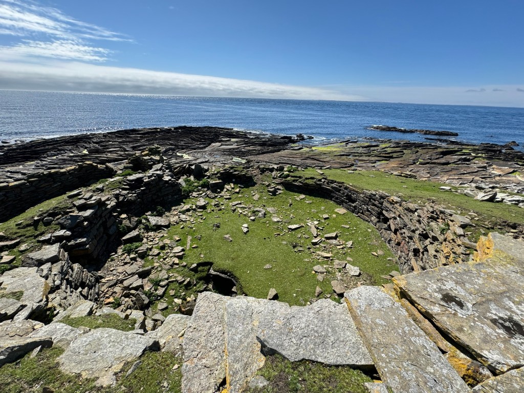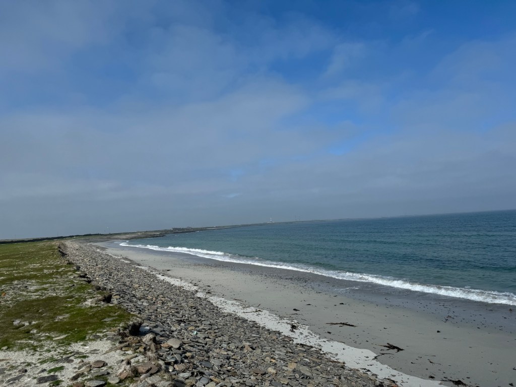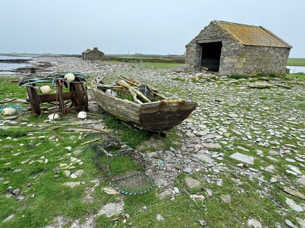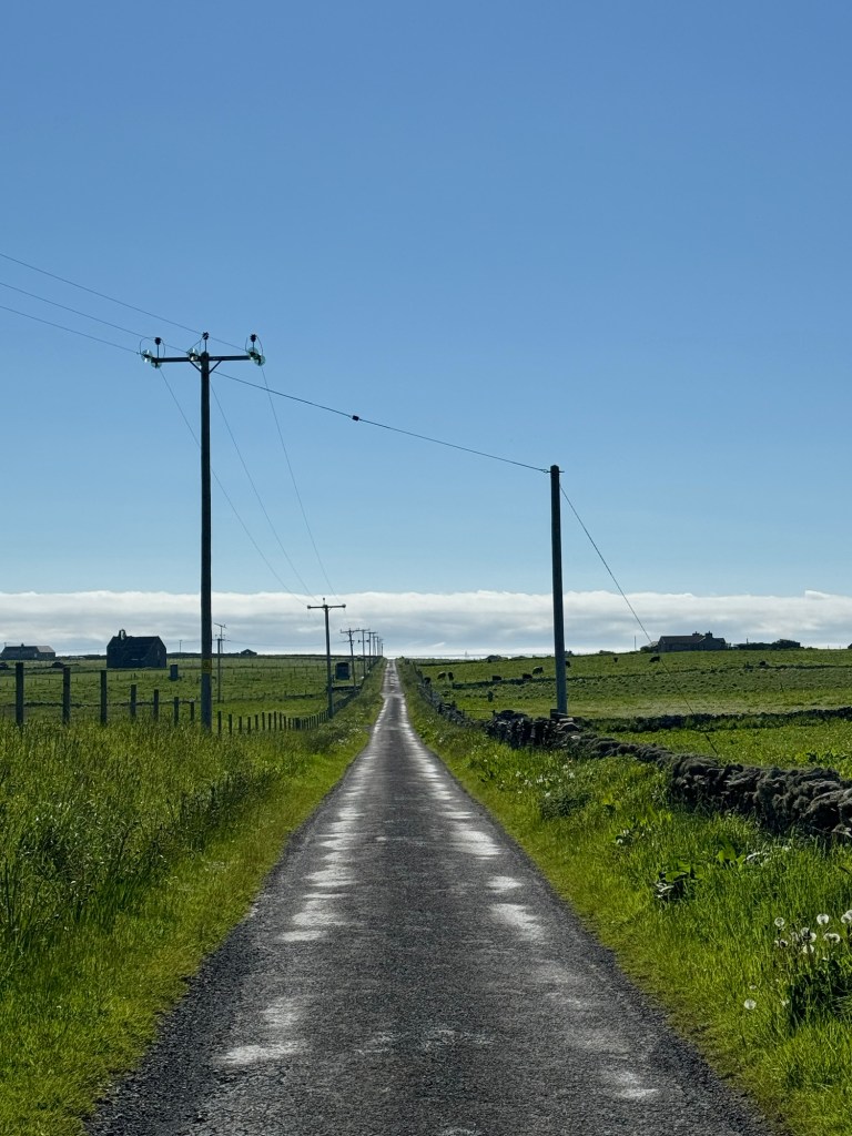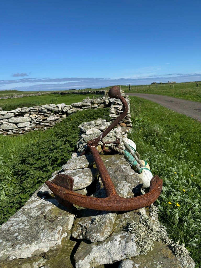 Having arrived safely on the plane we quickly became fog bound and are now on our third night on this island and hoping to get the ferry back to Kirkwall on Tuesday as all the flights are now full. We shouldn’t be surprised by this, none of our holidays are complete without some kind of delay or weather related incident. In fact one of our first family holidays to Orkney (note again not the Orkney’s please) was significantly impacted by the wind (meteorological). We were camping at the time and got caught in the tail end of a hurricane and I will never forget standing outside the tent (tethered to the car no, that’s the tent not me, although we have seen similar experiences with people in the form of stag initiations in Kirkwall!). As a lonely police officer drove past, in slow motion, and just looked pitifully at me so the impact of the weather gods for the last three days hasn’t really been a surprise.. What an opportunity though to discover some more places and we have literally explored every inch of this island on foot. We’ve walked over thirty miles in the last couple of days and I’m sure I’m about three inches shorter than I was!