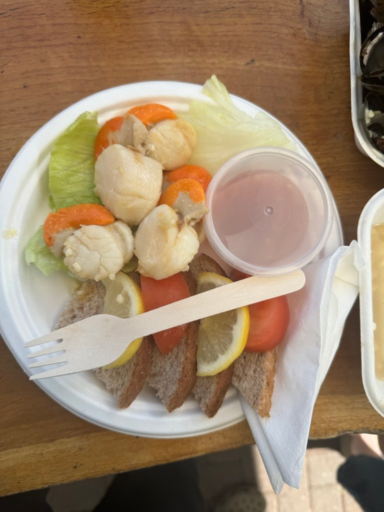 Also on the hit list are always Waterstones – although the range of local books to choose from is becoming more narrow as we seem to have most of them! Another must in Oban is the Green Shack, the finest and freshest of sea food around.. obligatory scallops, oysters and mussels for lunch.